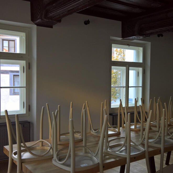 · obnova středověké zbrojnice, restaurace a pivovar Solnice v Českých Budějovících - kulturní památka (2016) >>> cena PRESTA v kategorii Památkové a historické stavby r. 2021 (Ateliér Heritas)